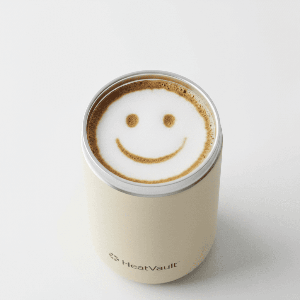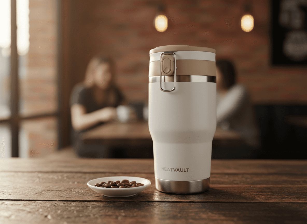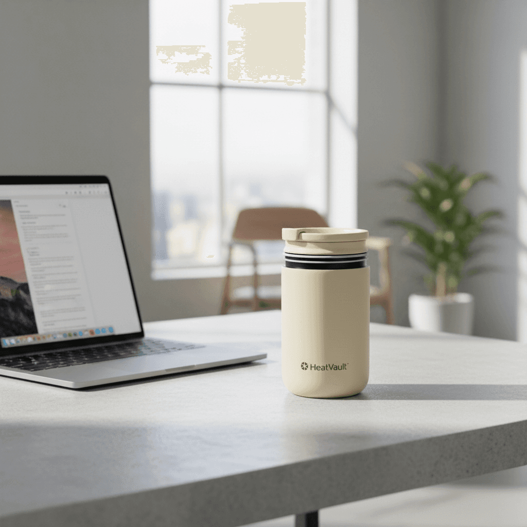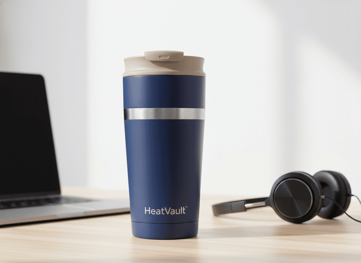 VaultCup — a thermal mug engineered to keep coffee hot all morning. No electronics. Pure thermal science.